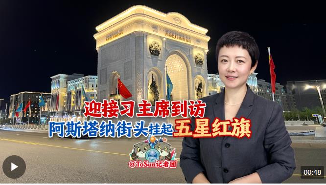 當地時間7月1日晚,阿斯塔納街頭掛起了中哈兩國國旗。ToSun記者團在現場遇到了來拍照打卡的當地人,跟隨我們的鏡頭一起去看看吧。