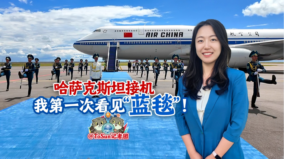 ToSun記者團在現場第一次見到了用天藍色地毯鋪就的“紅毯”。藍毯寓意是什么?一起來看現場。