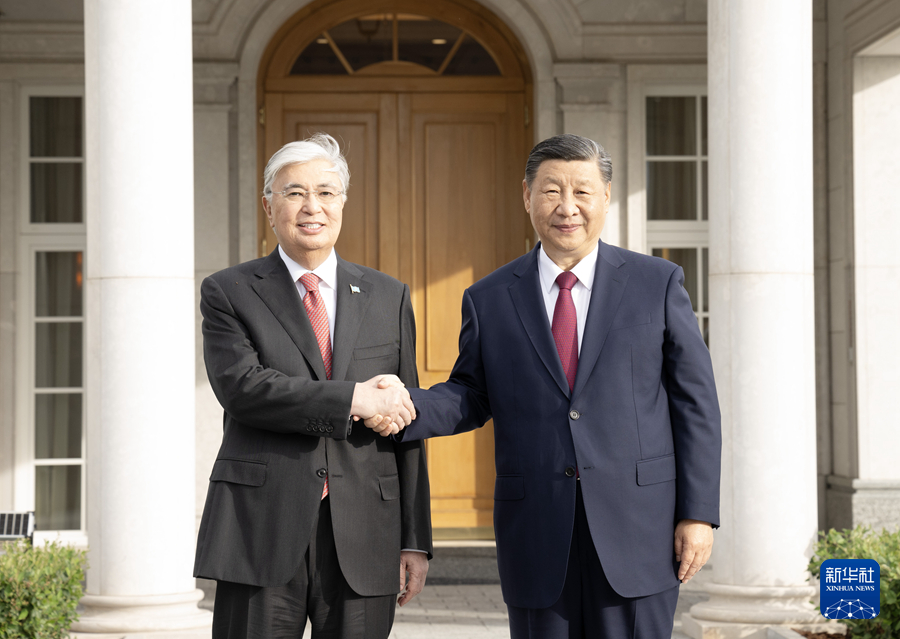 當地時間7月2日晚,國家主席習近平應邀同哈薩克斯坦總統托卡耶夫共進晚餐,在愉快溫馨的環境中就中哈關系和共同關心的問題進行了親切友好的交流。這是習近平同托卡耶夫握手。