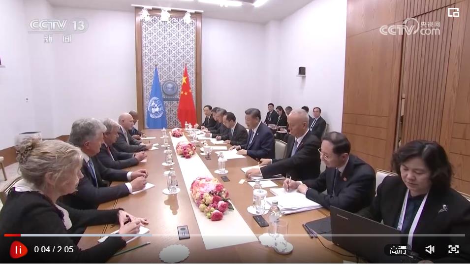當地時間7月4日下午,國家主席習近平在阿斯塔納出席上海合作組織峰會期間會見聯合國秘書長古特雷斯。
