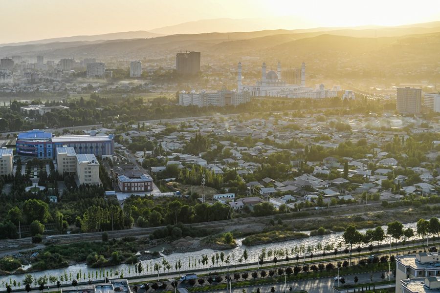 這是2024年6月13日拍攝的塔吉克斯坦首都杜尚別城市風光。新華社記者 鄭開君 攝