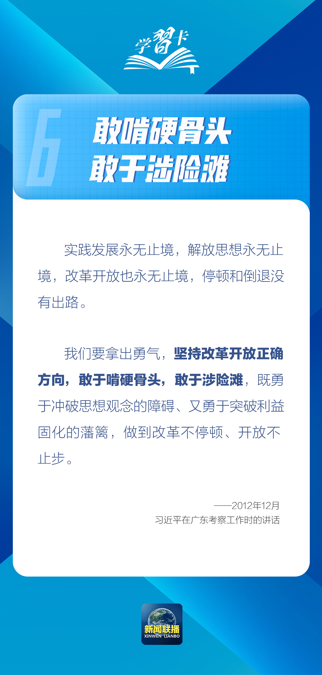 “改革開放是我們黨在新的時(shí)代條件下帶領(lǐng)人民進(jìn)行的新的偉大革命,是當(dāng)代中國(guó)最鮮明的特色,也是我們黨最鮮明的旗幟。”