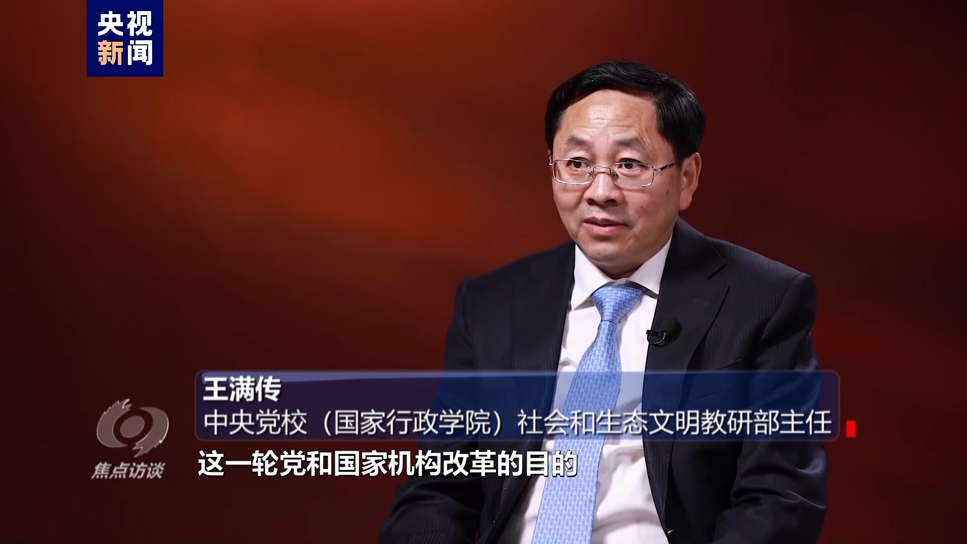 中央黨校(國家行政學(xué)院)社會(huì)和生態(tài)文明教研部主任 王滿傳:通過這一系列重要的舉措,達(dá)到了習(xí)近平總書記提出的這一輪黨和國家機(jī)構(gòu)改革的目的。就是推動(dòng)黨對(duì)社會(huì)主義現(xiàn)代化建設(shè)的領(lǐng)導(dǎo),在機(jī)構(gòu)設(shè)置上更加科學(xué)、在職能配置上更加優(yōu)化、在管理運(yùn)行上更加高效。