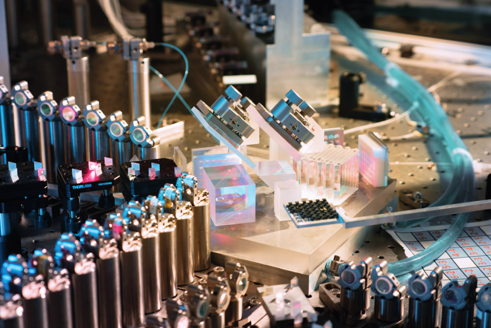 在中國科學技術大學拍攝的用于“九章三號”實驗的光學干涉儀(2023 年 10 月 15 日攝) 中國科學技術大學供圖