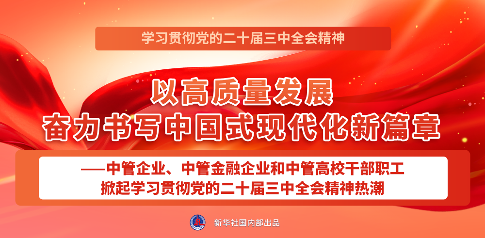 點擊標題看詳情:以高質(zhì)量發(fā)展奮力書寫中國式現(xiàn)代化新篇章——中管企業(yè)、中管金融企業(yè)和中管高校干部職工掀起學習貫徹黨的二十屆三中全會精神熱潮