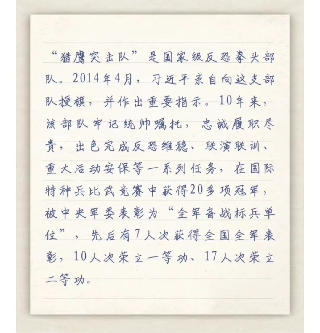 習主席給“強軍精武紅四連”全體官兵回信
