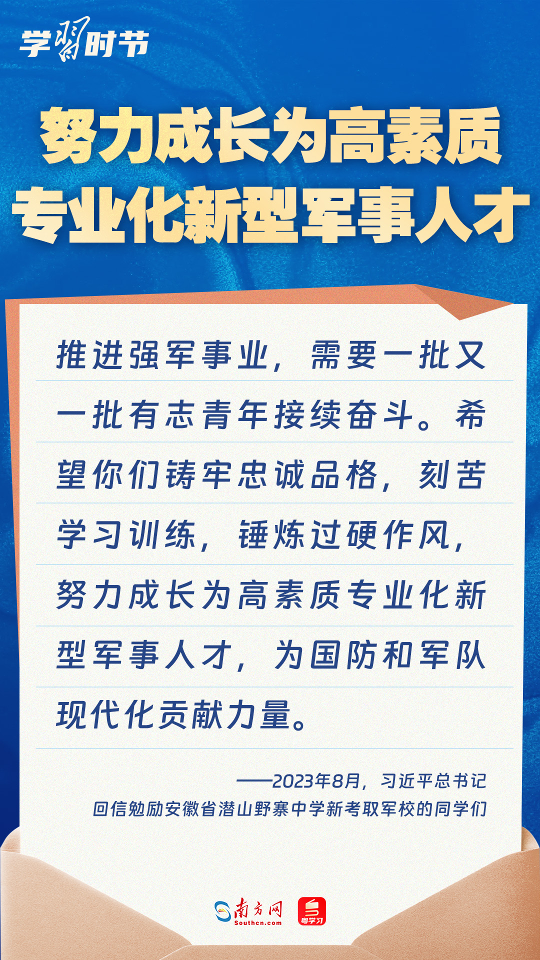 強國必須強軍,軍強才能國安。黨的十八大以來,習近平總書記始終牽掛一線官兵冷暖,高度重視我軍院校教育和人才培養工作,多次給部隊官兵、軍校學員等回信。讓我們一起重溫總書記的諄諄寄語!