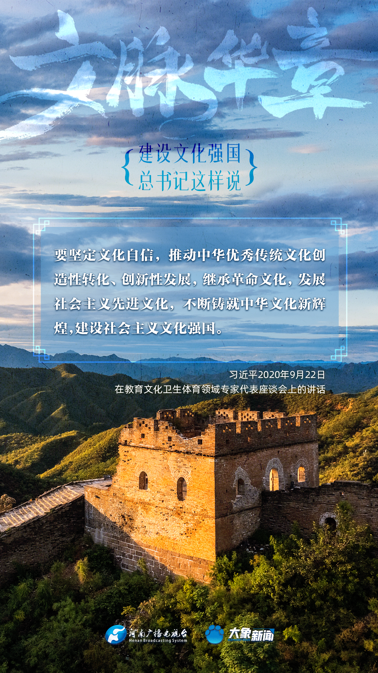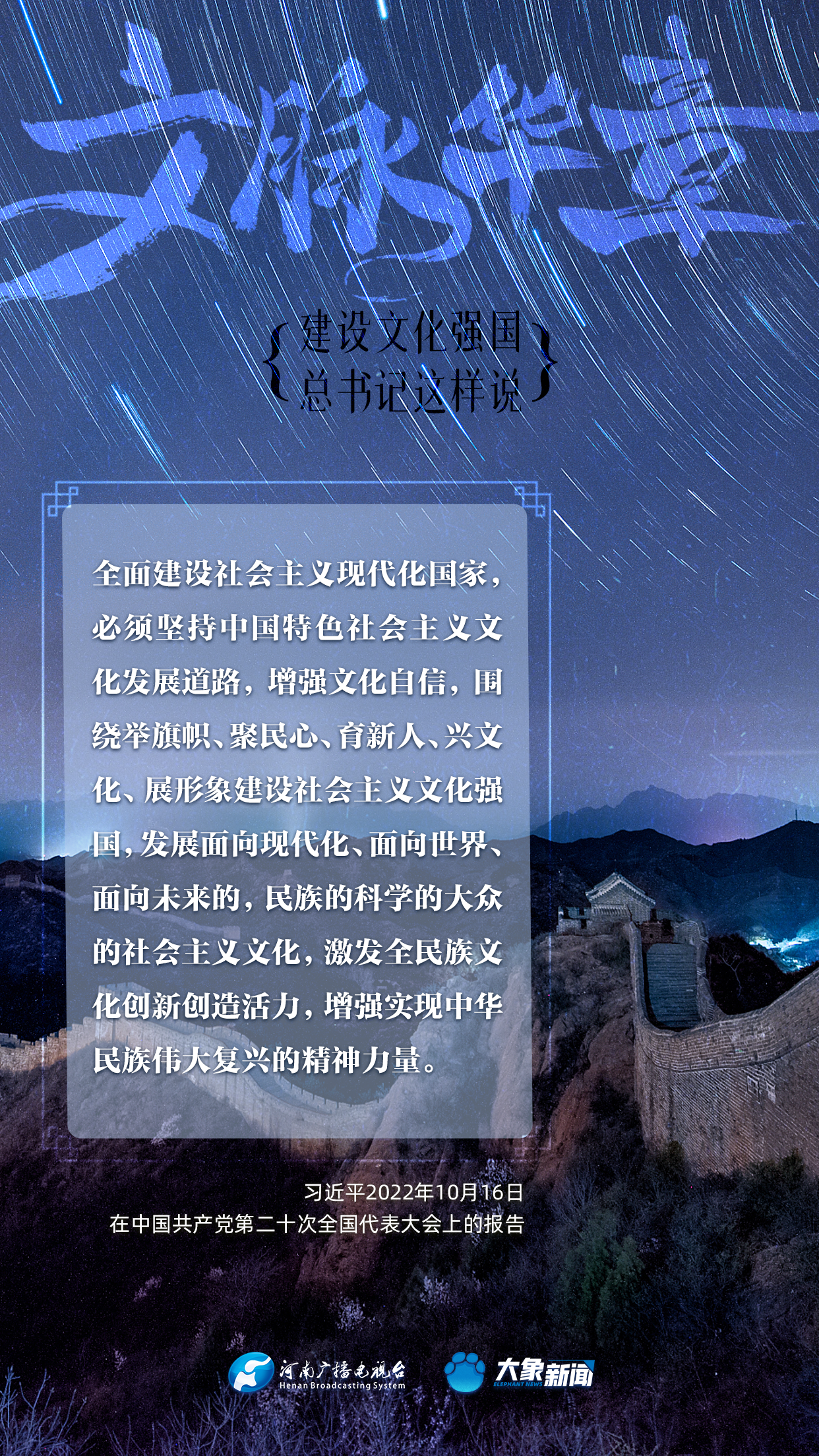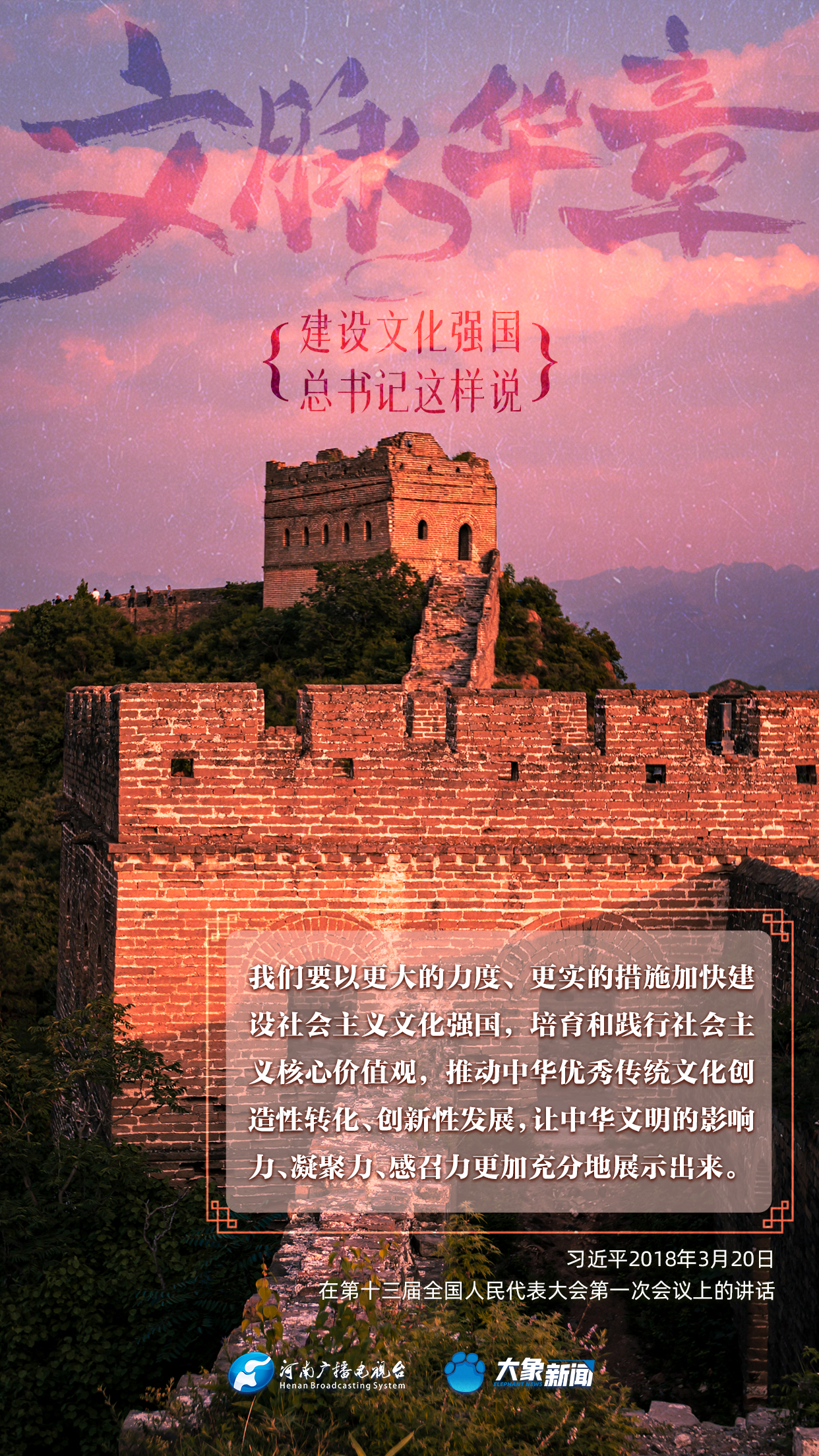 黨的十八大以來,習近平總書記站在全局和戰略高度,就建設社會主義文化強國提出一系列新思想新觀點新論斷,為我們堅定文化自信,堅持中國特色社會主義文化發展道路,提供了指引。大象新聞與您一起學習、領悟。