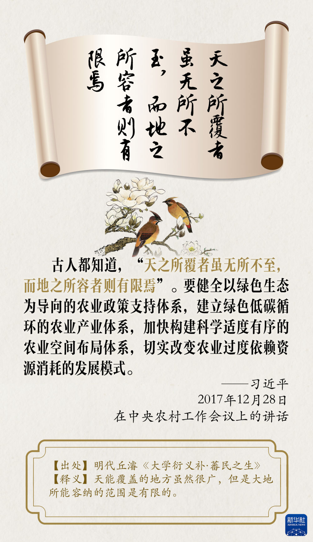 中華民族向來尊重自然、熱愛自然,綿延5000多年的中華文明孕育著豐富的生態文化。習近平總書記曾多次引用古語典故闡述生態文明,讓我們一起品讀,領悟其中的深刻警示和啟迪。