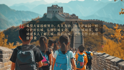 希望大家接續努力、久久為功,像守護家園一樣守護好長城,弘揚長城文化,講好長城故事,帶動更多人了解長城、保護長城,把祖先留下的這份珍貴財富世世代代傳下去,為建設社會主義文化強國、推進中國式現代化貢獻力量。