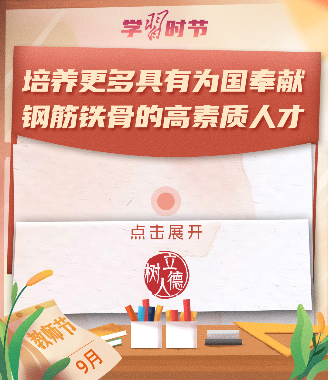 “百年大計,教育為本。教育大計,教師為本。”黨的十八大以來,習近平總書記多次以書信形式向教師群體和教育工作者表達囑托與期望,諄諄話語,催人奮進。在第四十個教師節(jié)到來之際,讓我們一起重溫總書記的諄諄寄語!