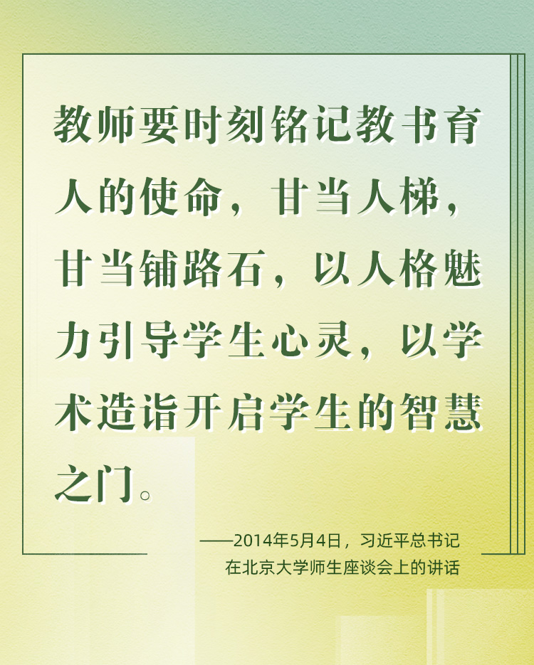 他們帶領學生前行,更新舊知、開掘新知、探索未知;他們肩負光榮使命,為黨育人、為國育才、為民育未來。守教育報國初心、擔立德樹人使命、圓民族復興之夢,建設社會主義現代化強國之路上,教育家精神自當念茲在茲、代代傳承、光芒永綻。