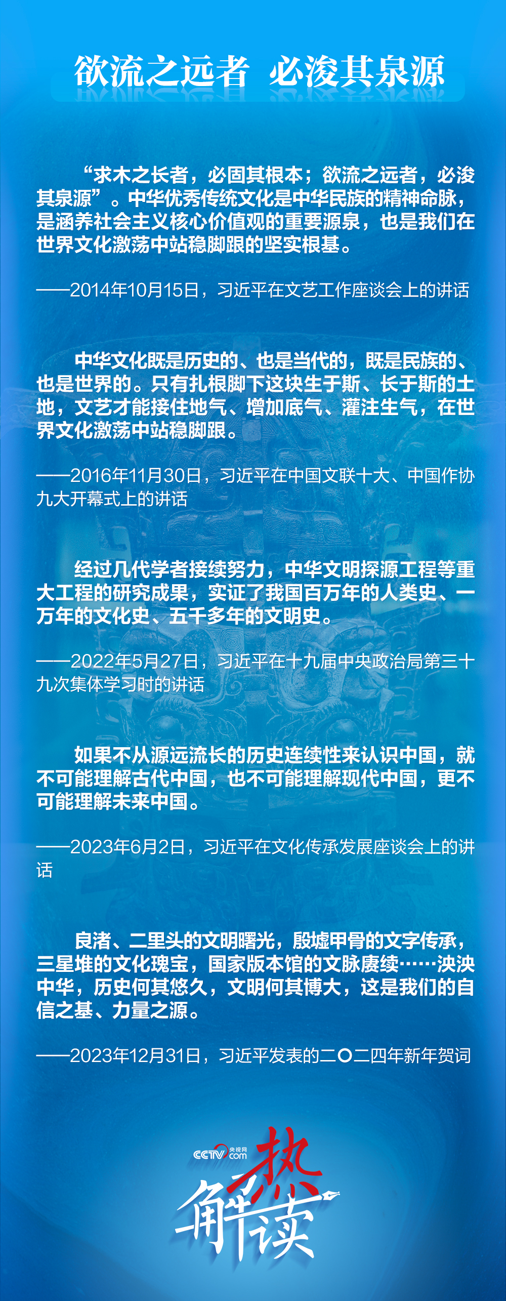 “求木之長(zhǎng)者,必固其根本;欲流之遠(yuǎn)者,必浚其泉源”。習(xí)近平總書(shū)記始終重視中華文明探源和考古工作。他強(qiáng)調(diào),一個(gè)民族、一個(gè)國(guó)家,必須知道自己是誰(shuí),是從哪里來(lái)的,要到哪里去,想明白了、想對(duì)了,就要堅(jiān)定不移朝著目標(biāo)前進(jìn)。