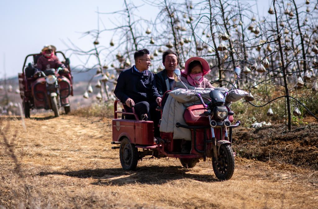全國人大代表袁海波(右三)在云南省曲靖市馬龍區一種植基地了解務工人員就業需求(2023年2月11日攝)。 新華社記者 江文耀 攝