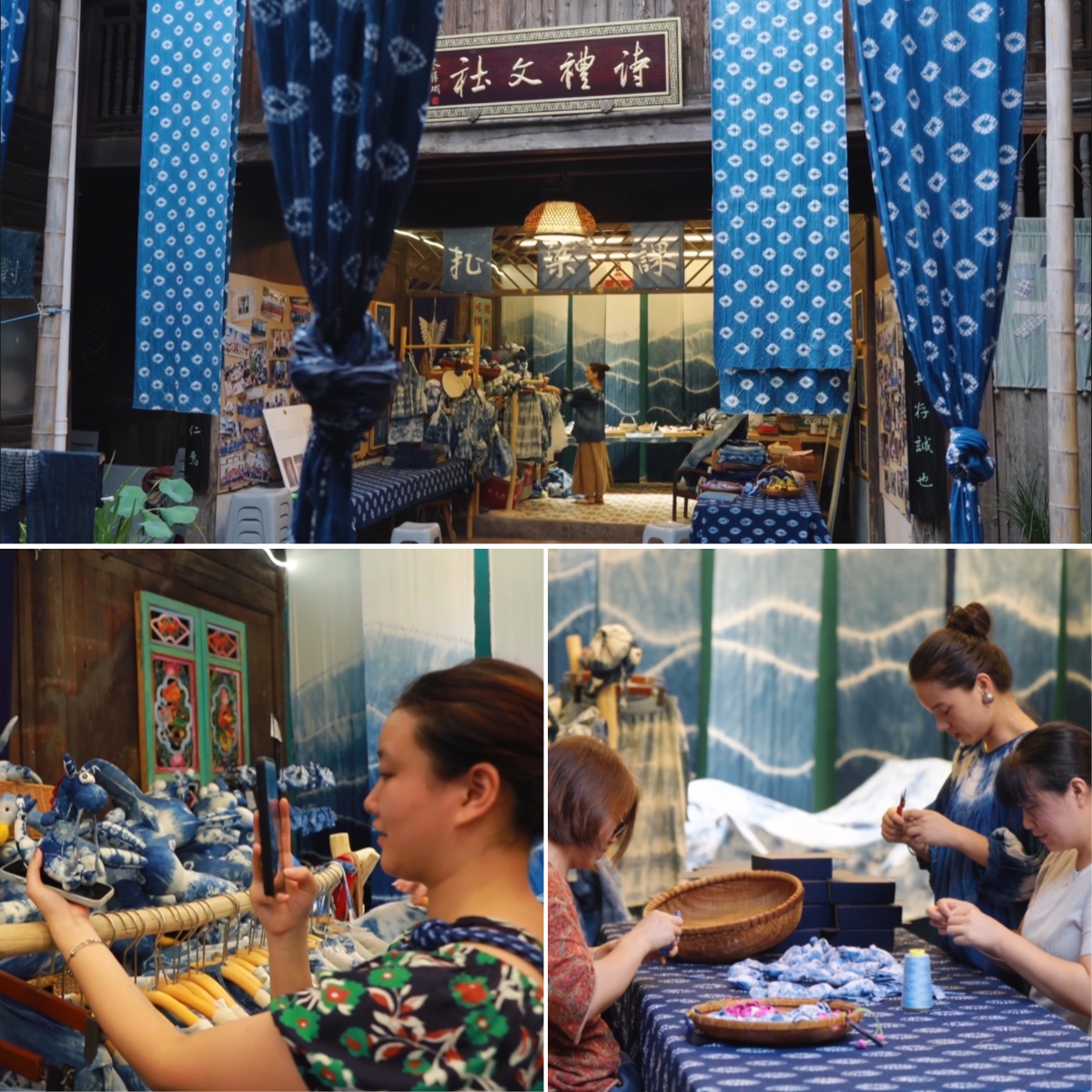 盡管她把家里的三姑六婆都找來幫忙,印染手作依然供不應求。等不及的游客們甚至自己動手,客串起了“伙計”。