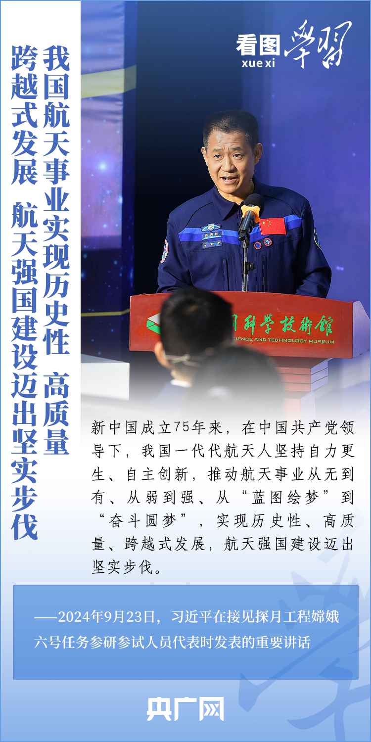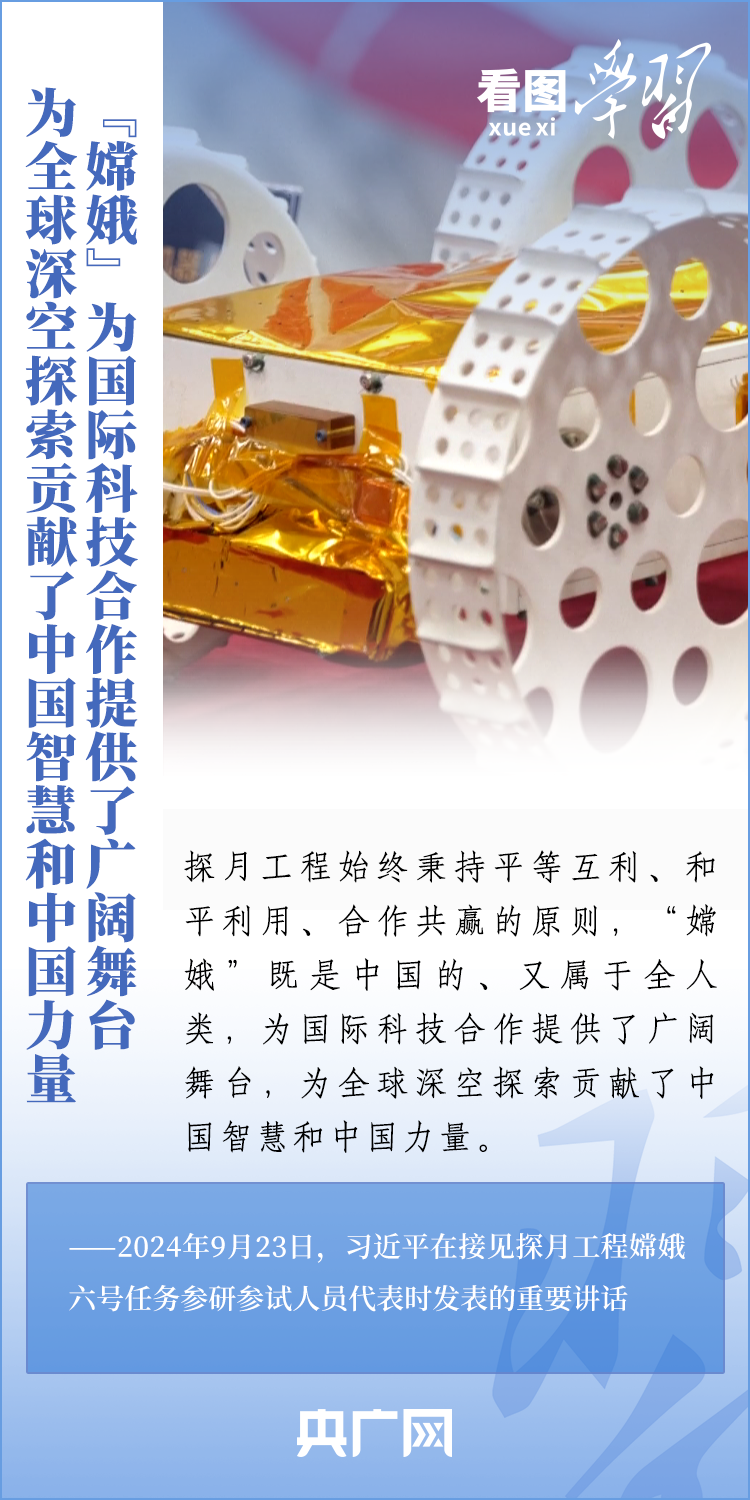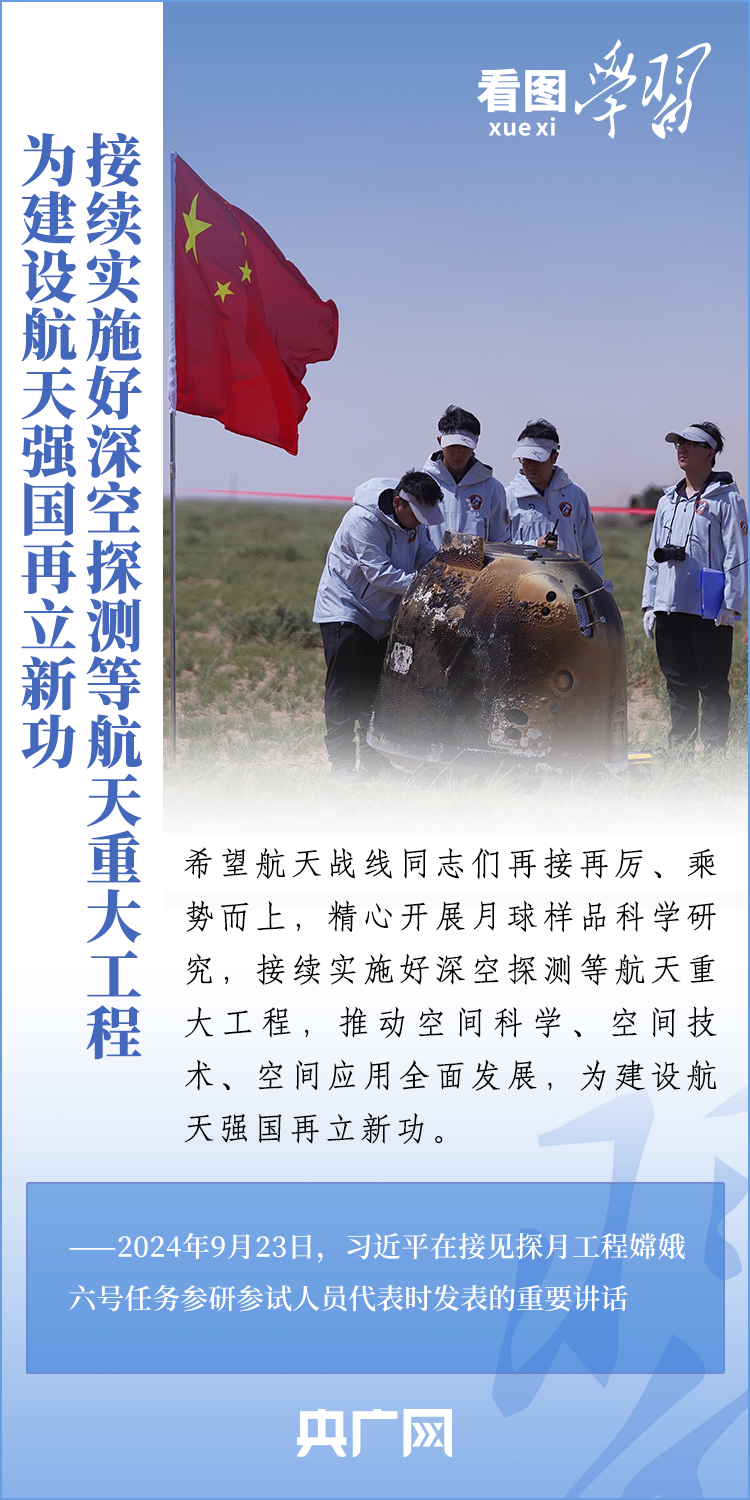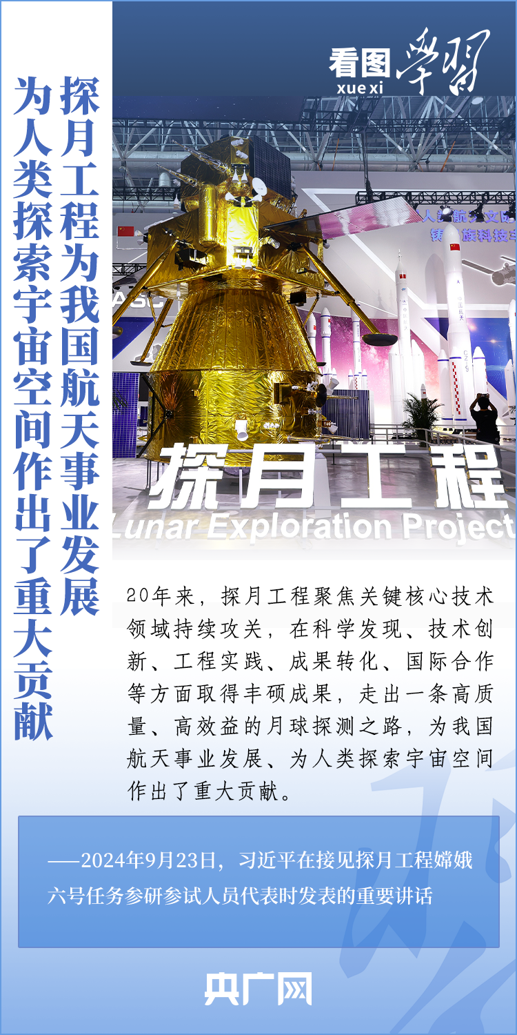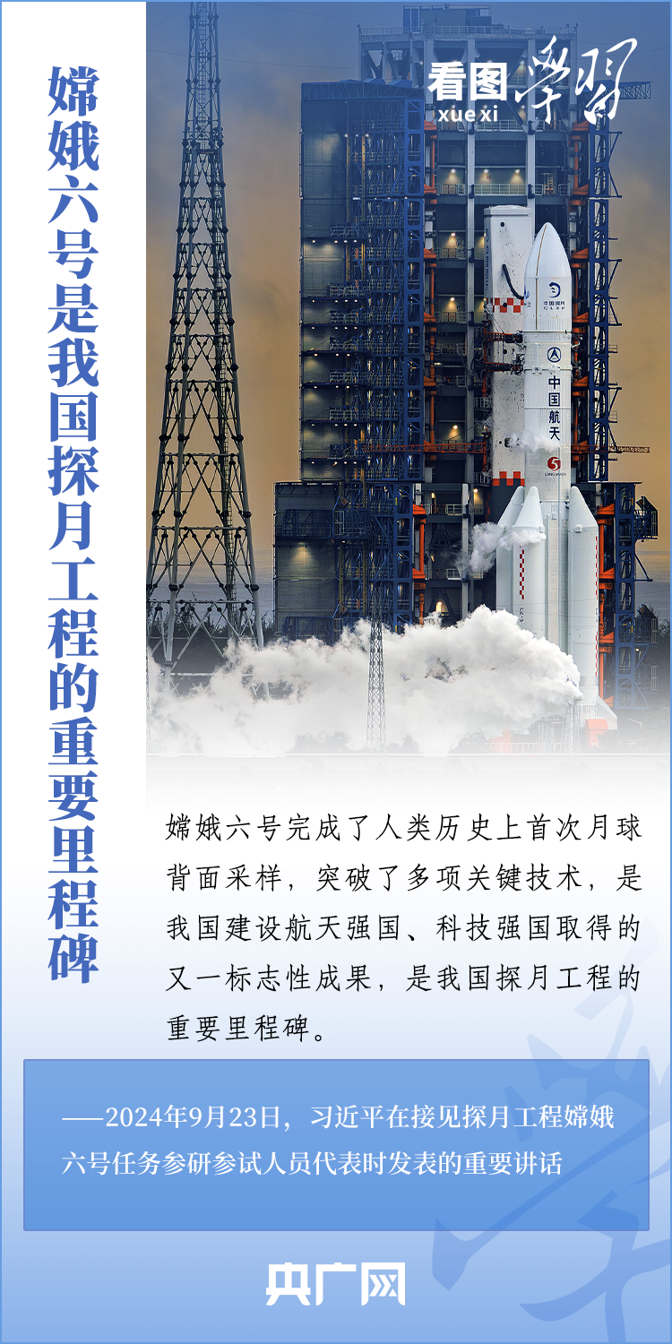 中國探月工程成果凝結著我國幾代航天人的智慧和心血。9月23日,習近平總書記接見探月工程嫦娥六號任務參研參試人員代表并發表重要講話??倳浉叨瓤隙ㄦ隙鹆柸蝿粘晒Φ闹匾饬x,以及探月工程為我國航天事業發展、為人類探索宇宙空間作出的重大貢獻,勉勵航天戰線工作者再接再厲、乘勢而上,為建設航天強國再立新功。一起來學習!