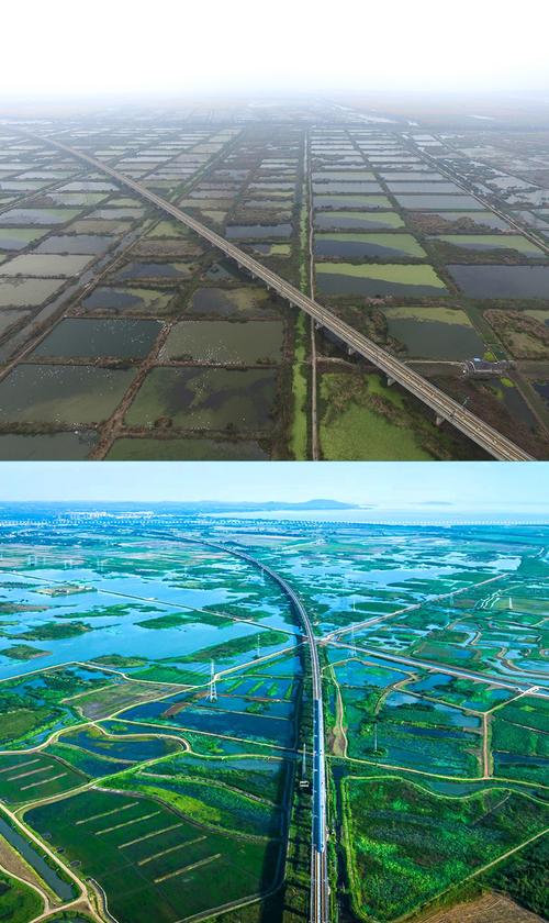 拼版圖片:圖為2011年和2023年鄱陽湖區的變化,曾經湖區內分布有捕鳥網,如今人與自然和諧共生的理念深入人心。攝影:傅建斌 周海燕 制作:賈稀荃