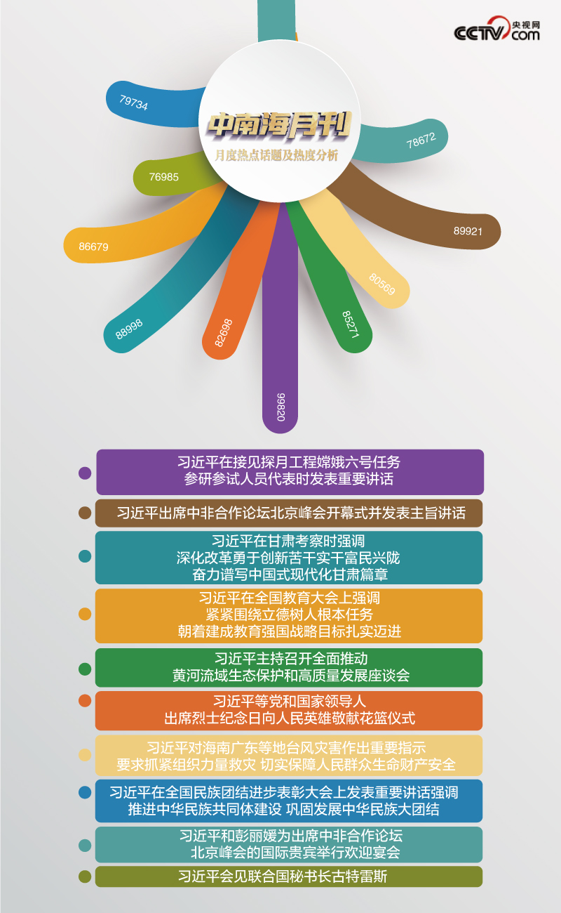 9月,中非深化團結合作、攜手推進現代化“雙向奔赴”,標注下共筑人類命運共同體的“全球南方時刻”。在央視網“智聞”系統提取分析的9月全網時政新聞熱點中,處處體現著匯聚夢想、激蕩信心的生動局面。