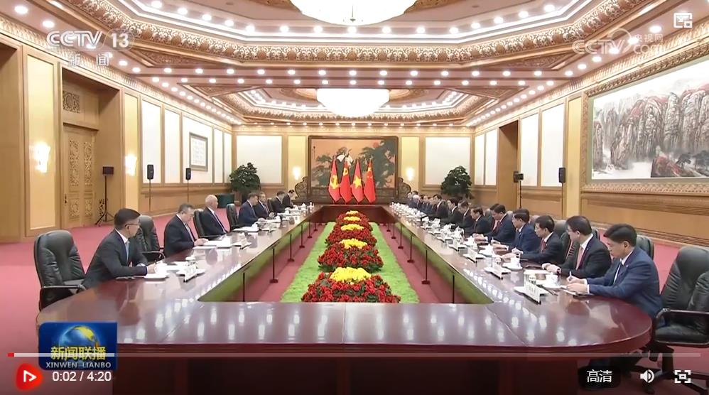 習近平指出,堅持共產黨領導和社會主義制度是中越兩國最本質的特征,也是發展中越關系最堅實的政治基礎。中方將越南視為周邊外交的優先方向,愿同越方一道,在深化高水平互利合作上走在前列,在維護國際公平正義上走在前列,在推動人類進步事業上走在前列,攜手構建具有戰略意義的中越命運共同體。