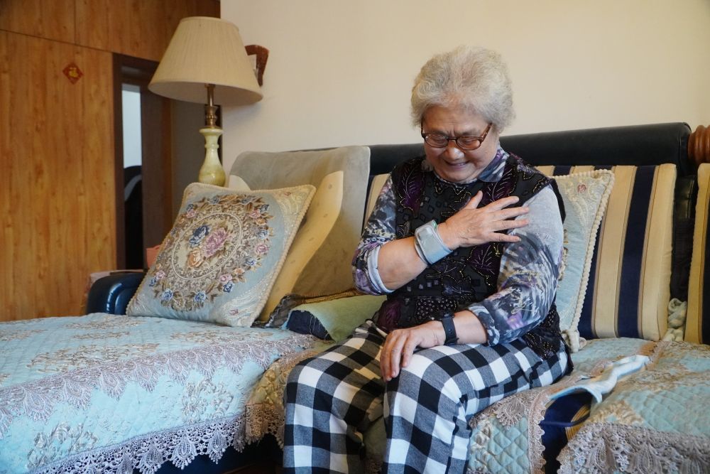 孔祥菊老人在家中使用智能手表監(jiān)測自己的心臟狀況。新華社記者 孫逸軒 攝