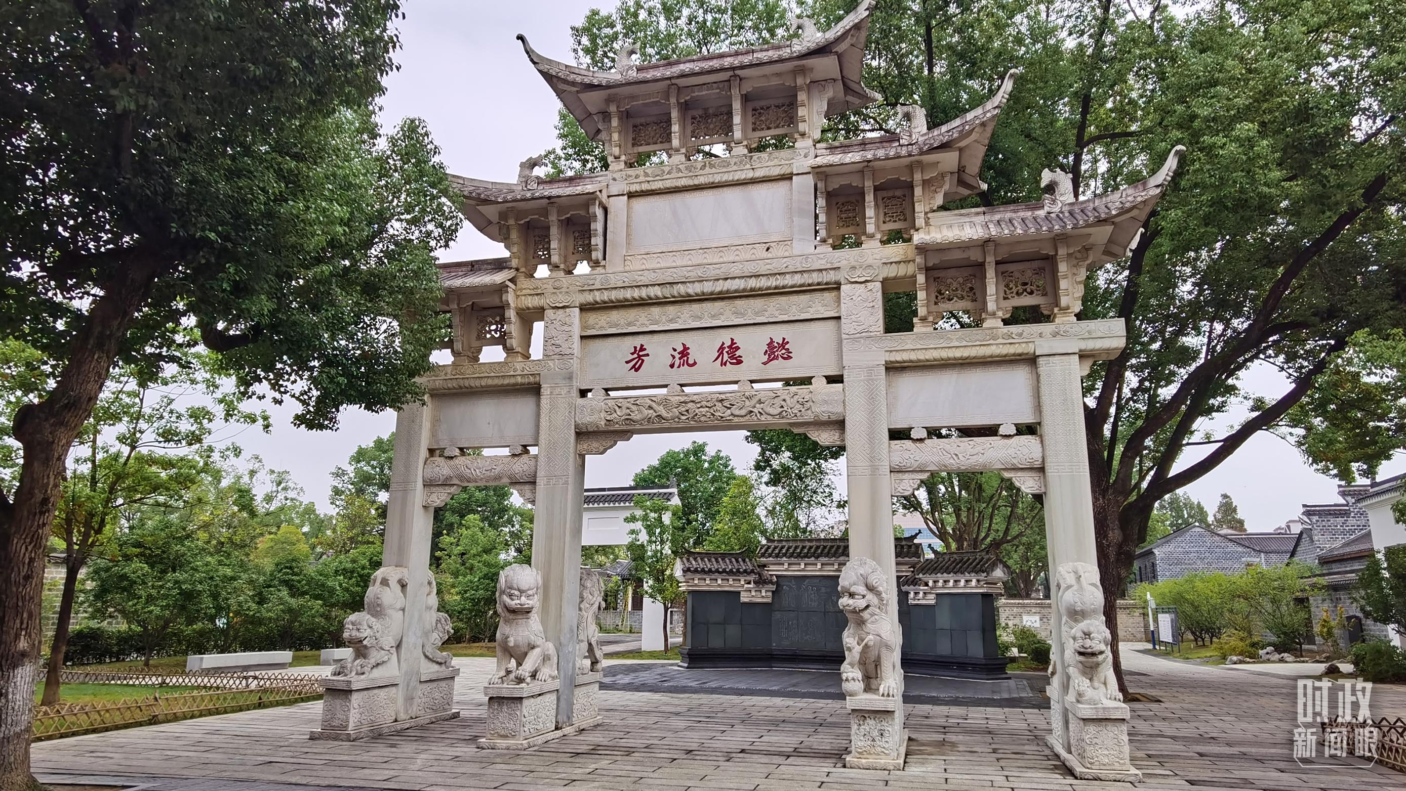 六尺巷的“懿德流芳”和“禮讓”石牌坊。(總臺央視記者郭鴻、總臺央廣記者馬喆拍攝)