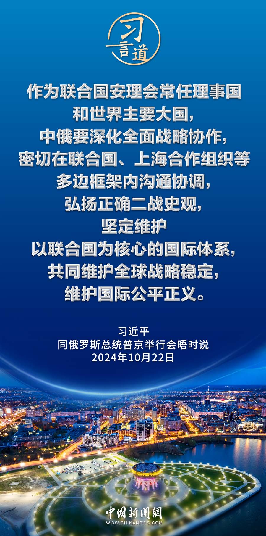 當地時間10月22日下午,國家主席習近平在喀山克里姆林宮同俄羅斯總統普京舉行會晤。習近平指出——