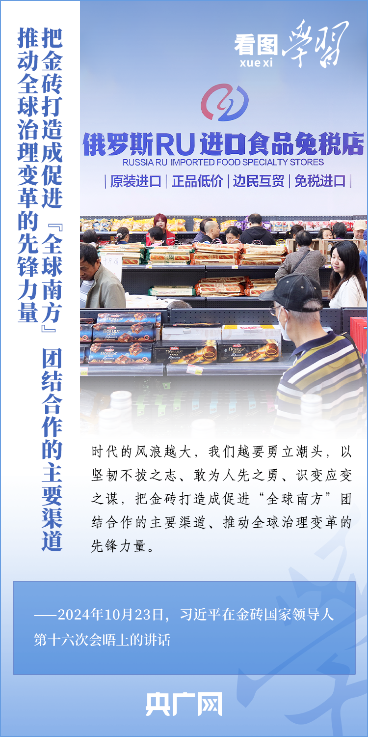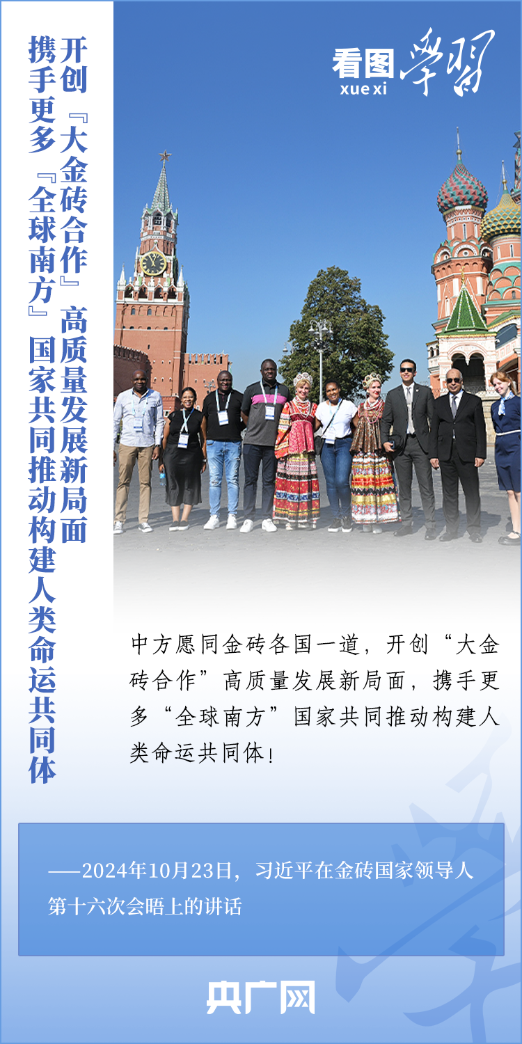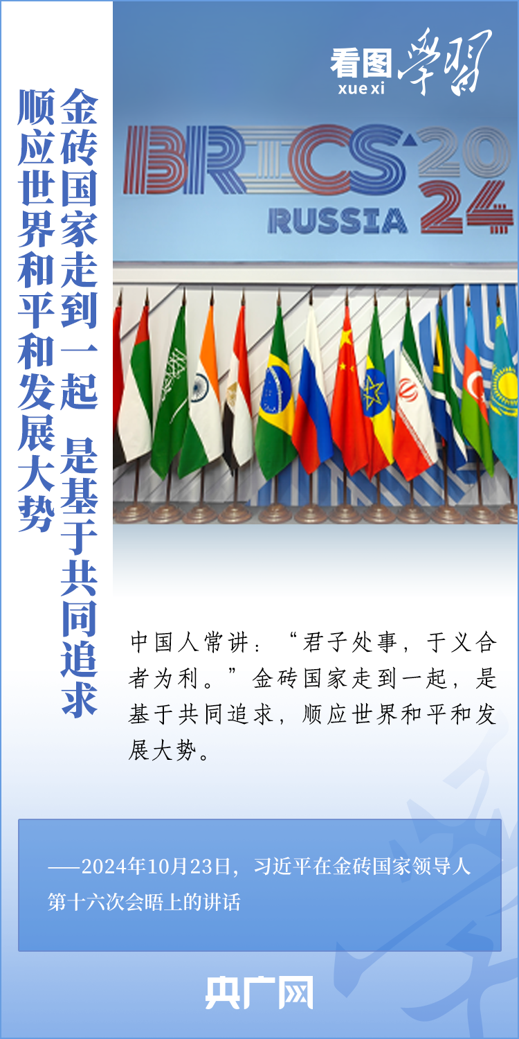 當地時間10月23日,國家主席習近平在俄羅斯喀山出席金磚國家領導人第十六次會晤并發表重要講話。習主席深刻闡述推動“大金磚合作”高質量發展的中國主張,就金磚大家庭發展合作提出五點務實舉措,表達了中方愿同金磚各國一道,攜手更多“全球南方”國家共同推動構建人類命運共同體的真誠愿望。一起來學習!