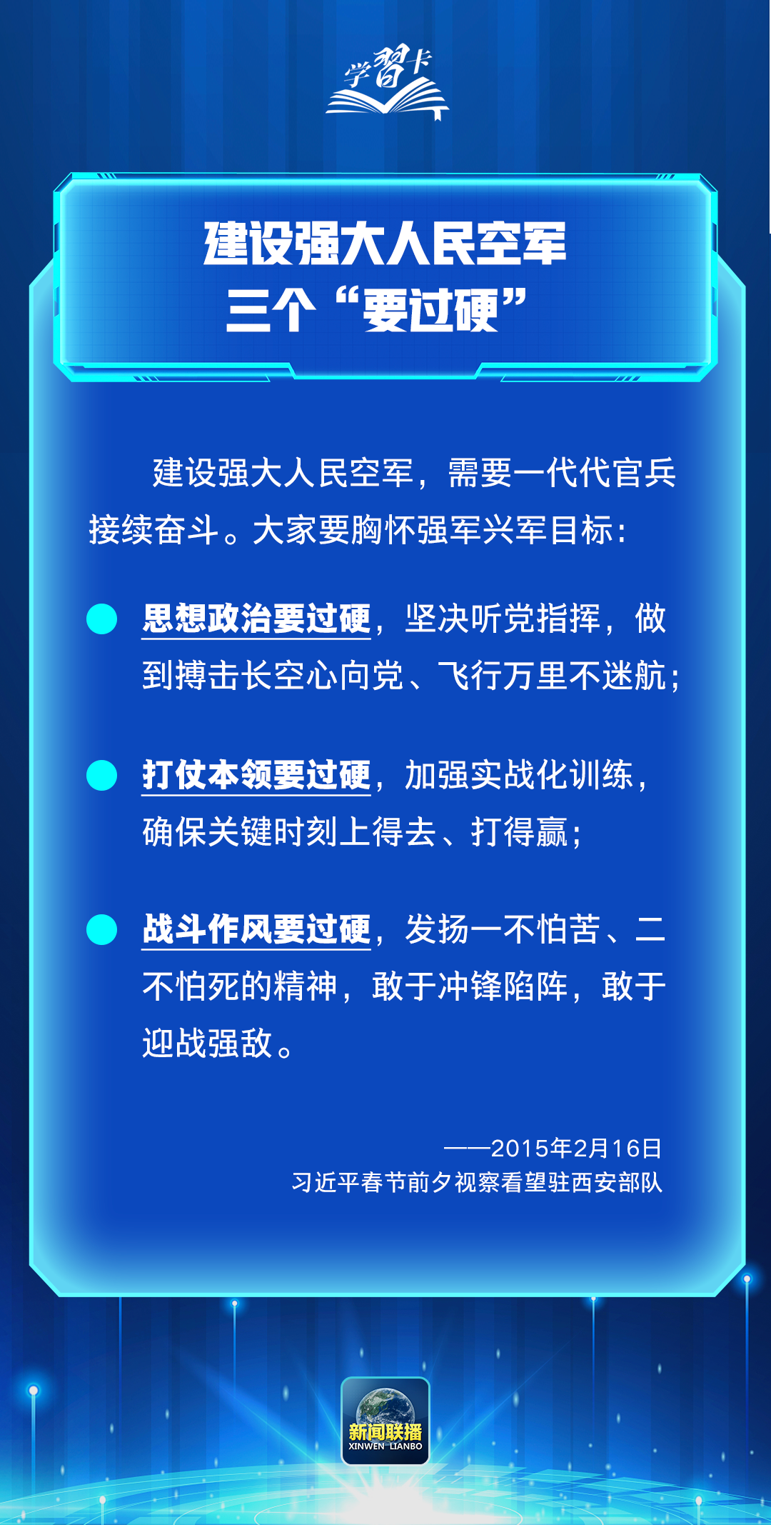2024年11月11日,是中國人民解放軍空軍成立75周年紀念日。在黨的堅強領導下,一代代空軍官兵胸懷凌云壯志,搏擊萬里長空,推動空軍建設取得舉世矚目的成就,為維護國家主權、安全、發展利益建立了不朽功勛。如何把人民空軍全面建成世界一流空軍?一起學習↓
