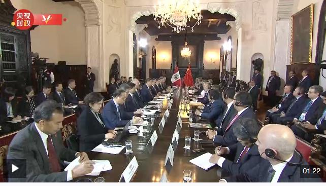 習近平指出,很高興應總統女士邀請,對秘魯進行國事訪問并出席亞太經合組織領導人非正式會議。這是我第三次訪問秘魯,也是繼去年我們在舊金山初次會晤和今年你訪華以來,我在一年時間里第三次同總統女士會晤。一踏上秘魯這片美麗的土地,我就強烈感受到秘魯人民對中國人民的友好情誼,心里十分溫暖。