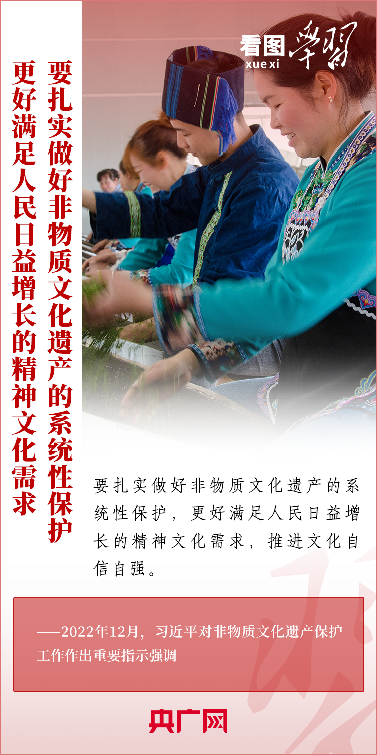 非物質文化遺產是中華優秀傳統文化的重要組成部分,是中華文明綿延傳承的生動見證。習近平總書記高度重視推動中華優秀傳統文化的創造性轉化、創新性發展,多次對非物質文化遺產保護工作作出重要指示,強調要扎實做好非物質文化遺產的系統性保護,推動中華文化更好走向世界。
