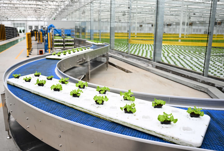 2024年12月12日在內蒙古鄂爾多斯市達拉特旗內蒙古現代數字農業科技產業園拍攝的生菜苗。新華社記者 貝赫 攝