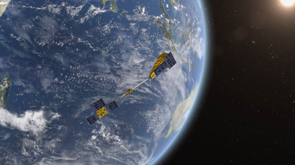 “澳科一號”衛星在軌示意圖(右為A星,左為B星)。圖片由澳門科技大學“澳科一號”團隊提供