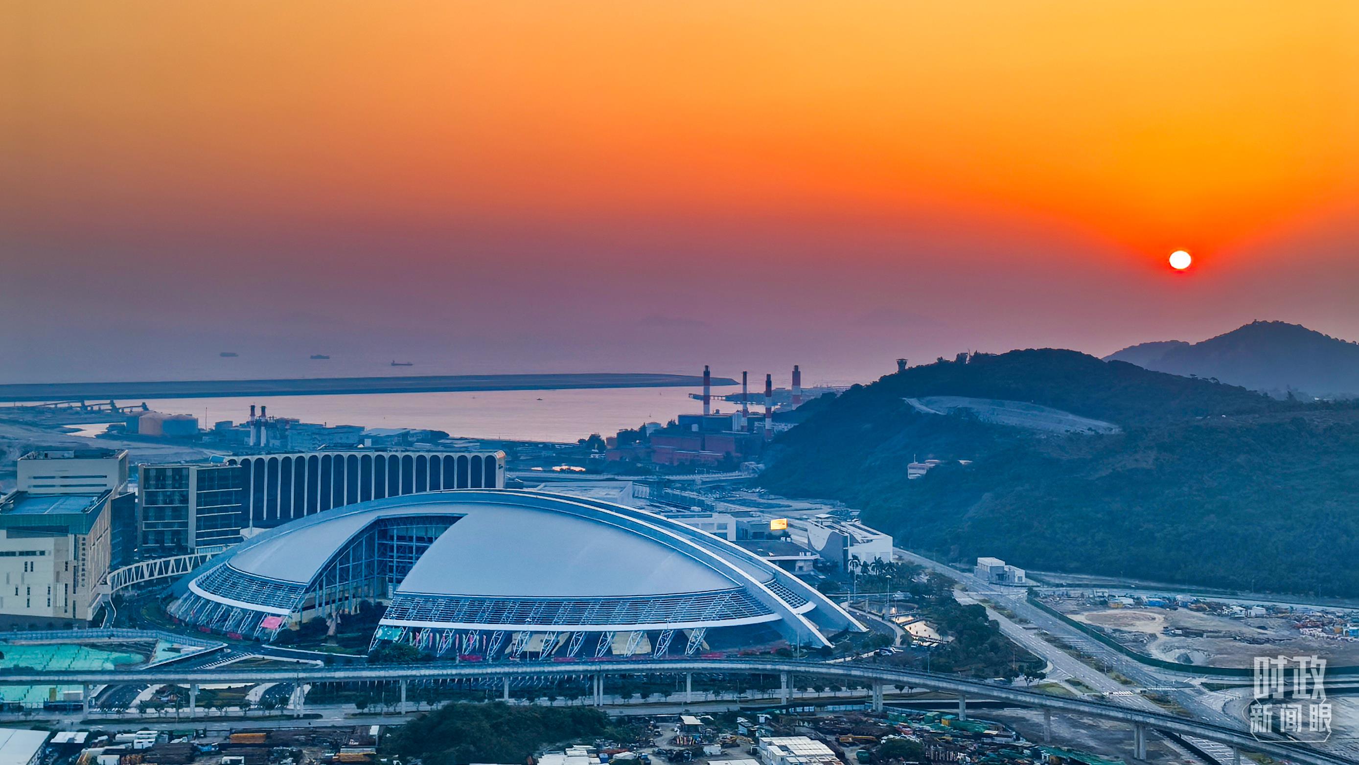 12月20日,朝霞映襯下的澳門東亞運動會體育館。(總臺央視記者張垚拍攝)