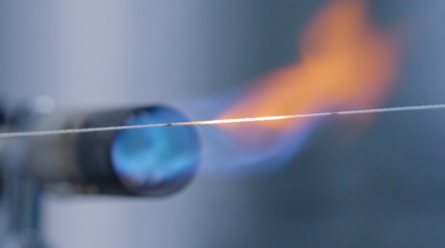 “這根絲超級耐高溫,1200℃的火焰也燒不斷它。它比頭發(fā)絲還細,直徑只有7到12微米,卻能提起5公斤重物。”姜楠介紹,這根絲可以做成布、繩子、套管、織帶等,可應用于石油化工、能源電力、國防安全等多個領域。10年研發(fā)期間,工作人員做了無數(shù)次試驗,打了幾萬個樣品,才讓它硬核出圈,填補了國內(nèi)高性能纖維材料的空白。
