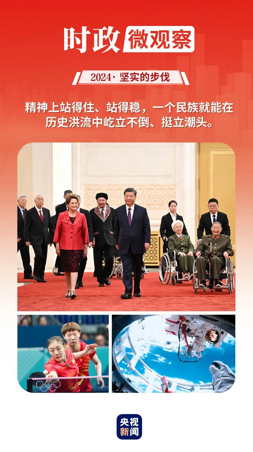 回望2024年,黨的二十屆三中全會標記下改革開放進程又一重要歷史性時刻;我們熱烈慶祝中華人民共和國成立75周年 、澳門回歸祖國25周年,匯聚砥礪前行的強大力量;中國體育代表團取得夏季奧運會境外參賽最好成績,生動詮釋了新時代中國精神;太空遨游、智能迭代、長橋飛渡、巨輪啟航,中國的創新動力、發展活力勃發奔涌……中國人民更加自信自強,奮斗精神更加昂揚。