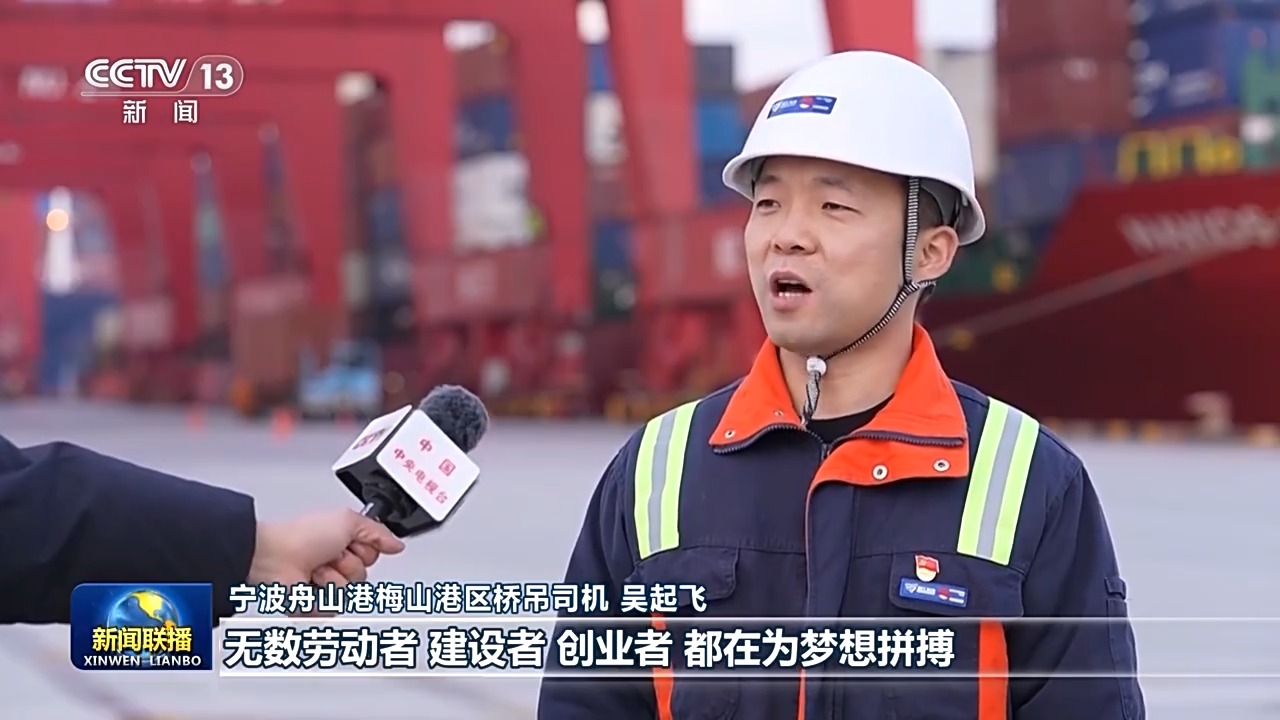 寧波舟山港梅山港區(qū)橋吊司機(jī) 吳起飛:習(xí)近平總書記在2025年新年賀詞里說,無數(shù)勞動(dòng)者、建設(shè)者、創(chuàng)業(yè)者都在為夢想拼搏。2024年,我們實(shí)現(xiàn)了寧波舟山港梅山港區(qū)年集裝箱吞吐量超一千萬的目標(biāo)。2025年,和團(tuán)隊(duì)的小伙伴們一起,把智慧港口建設(shè)好,為海港的發(fā)展貢獻(xiàn)力量。