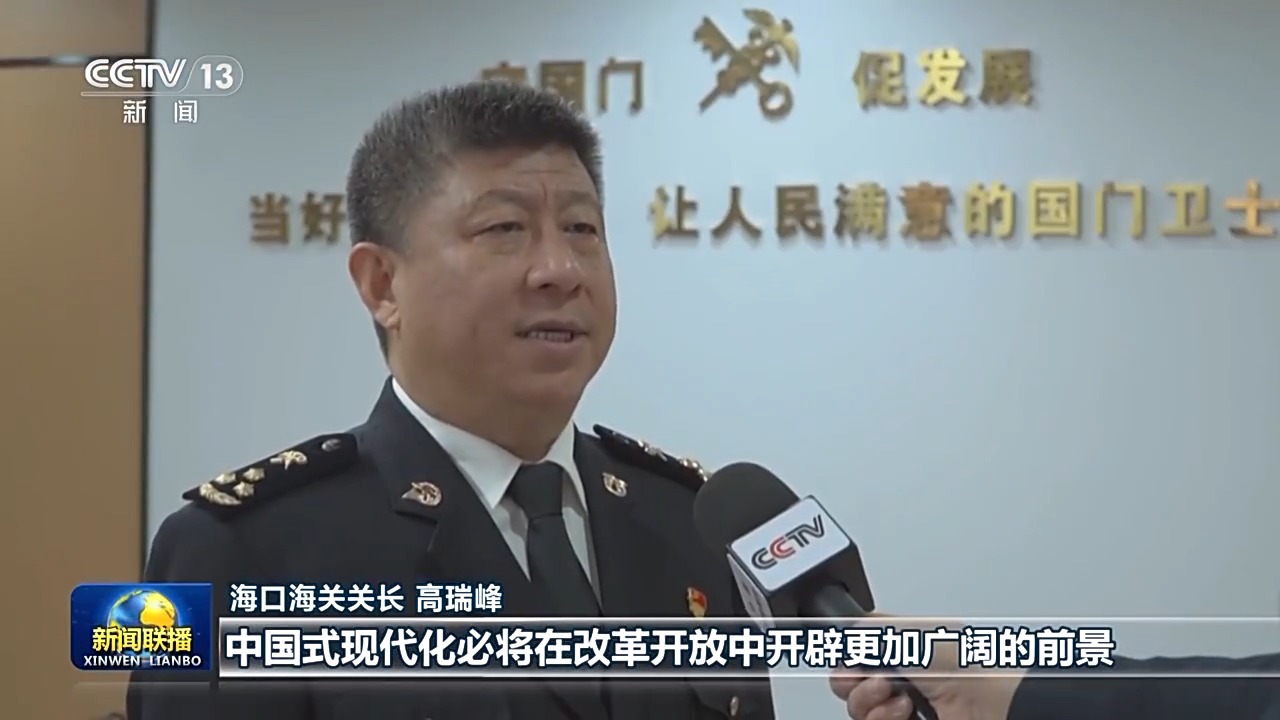 海口海關(guān)關(guān)長 高瑞峰:習(xí)近平主席在新年賀詞中指出,中國式現(xiàn)代化必將在改革開放中開辟更加廣闊的前景。今年,海南自貿(mào)港將實(shí)現(xiàn)封關(guān)運(yùn)作。我們要始終沿著習(xí)近平總書記指引的方向前進(jìn),不斷深化海關(guān)監(jiān)管制度集成創(chuàng)新,努力把海南自由貿(mào)易港打造成為引領(lǐng)我國新時(shí)代對外開放的重要門戶。
