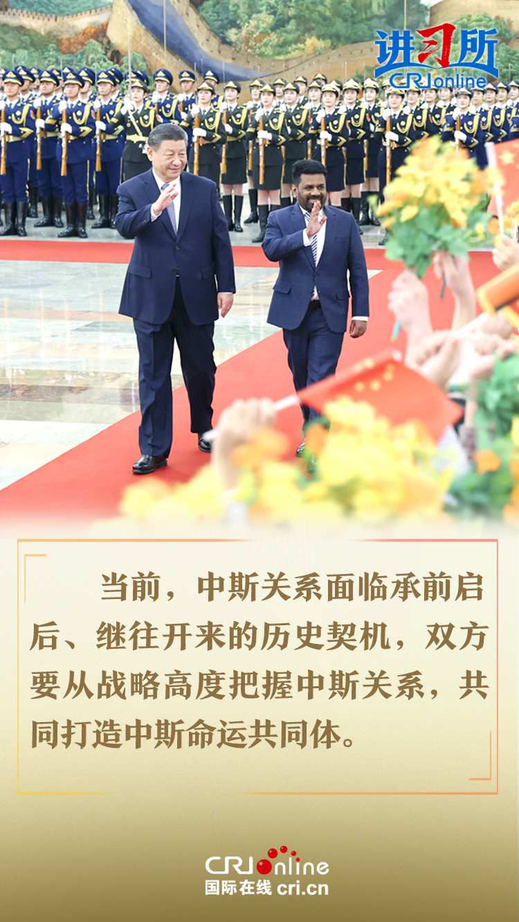 習近平主席指出,建交68年來,兩國關系始終保持健康穩定發展,樹立了不同國家友好相處、互利合作的典范。當前,中斯關系面臨承前啟后、繼往開來的歷史契機,雙方要從戰略高度把握中斯關系,共同打造中斯命運共同體。
