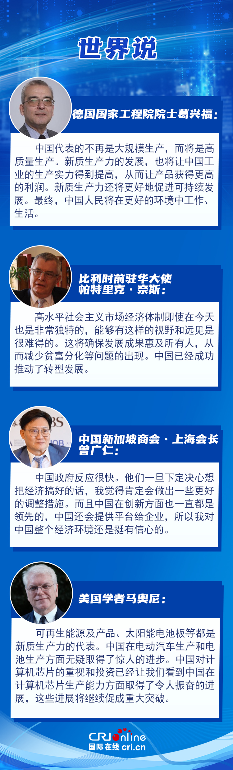 多位國際人士對中國經濟發展充滿信心,高度肯定中國政府在經濟發展中的核心引領作用,并對中國在高質量生產及高精尖領域的創新領先地位表示贊賞。