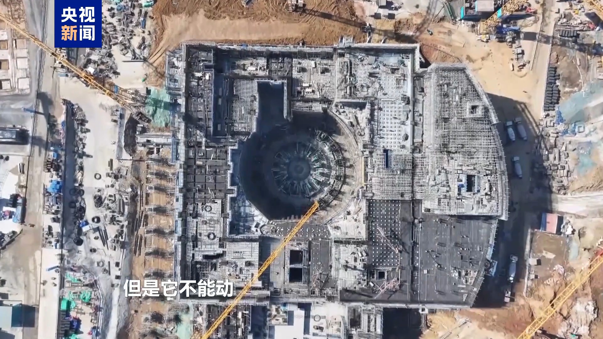 總臺央視記者 王陶然:我們現在來到了BEST建設項目最核心的位置,也就是將來“人造太陽”的核心部件所在的位置。可以看到我周圍有一圈不銹鋼的鋼柱。這個鋼柱一共有16根,每一根的重量是20噸。這樣的鋼有一個特殊的名字叫無磁鋼。這鋼柱背后也有它自己的一個小故事。