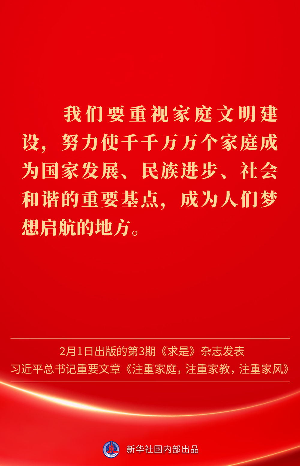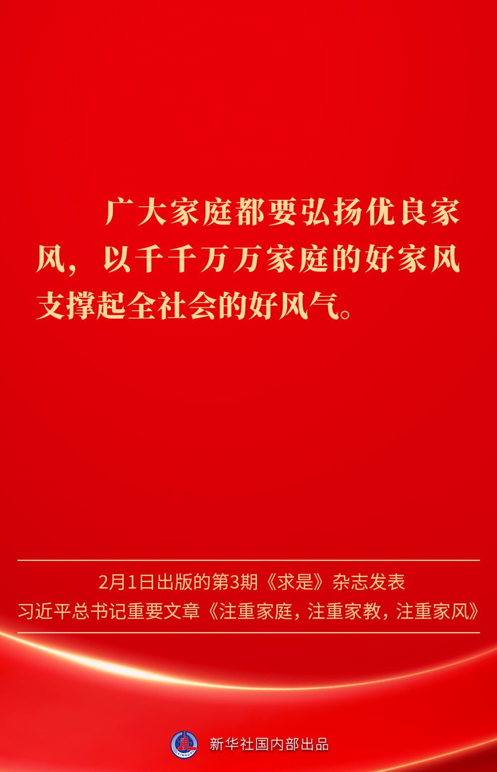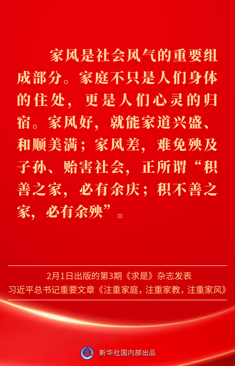 萬家團圓共慶新春佳節之際,2月1日出版的第3期《求是》雜志發表習近平總書記重要文章《注重家庭,注重家教,注重家風》。為什么要注重家庭、家教、家風?如何做好家庭文明建設?習近平總書記這樣闡述——
