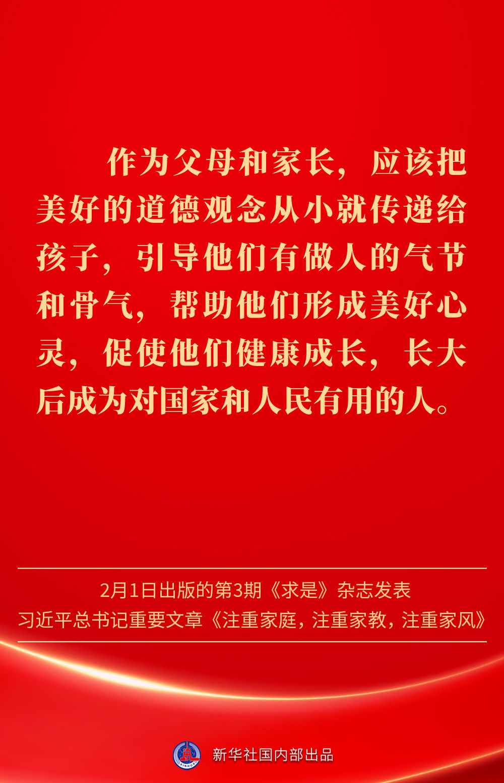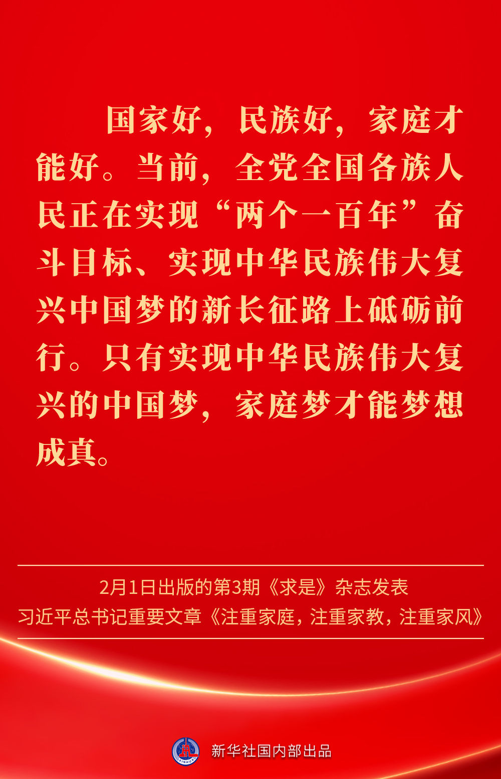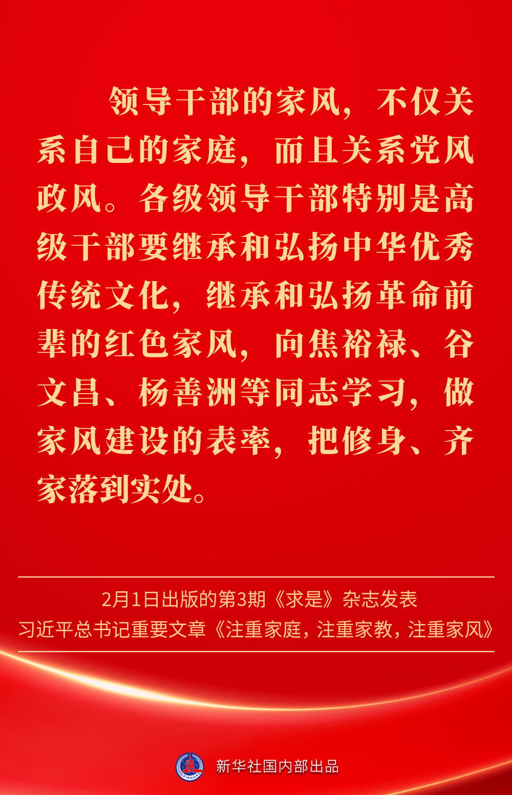 萬家團圓共慶新春佳節之際,2月1日出版的第3期《求是》雜志發表習近平總書記重要文章《注重家庭,注重家教,注重家風》。為什么要注重家庭、家教、家風?如何做好家庭文明建設?習近平總書記這樣闡述——