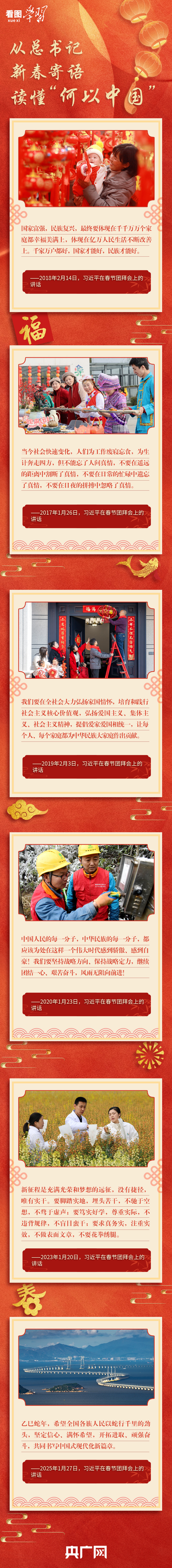 “千家萬戶都好,國家才能好,民族才能好?!薄靶抡鞒淌浅錆M光榮和夢想的遠征,沒有捷徑,唯有實干”……每年春節團拜會上,習近平總書記對同胞們飽含深情的新春祝福,鼓舞人心、凝聚力量。讓我們重溫這些暖心寄語,在新的一年里,堅定信心、滿懷希望,以蛇行千里的勁頭,為實現更加美好的未來不懈奮斗!