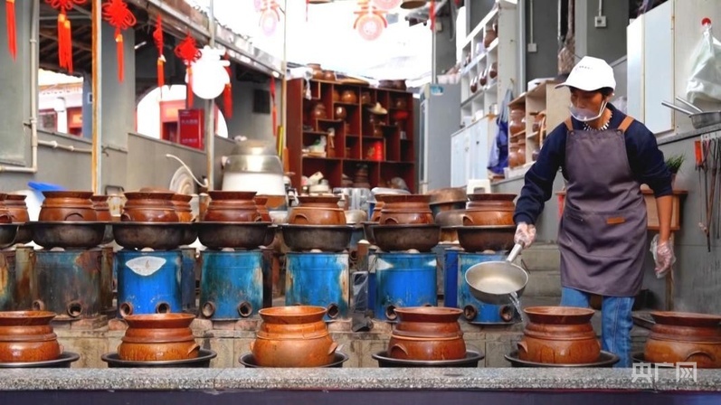 制作盬子雞的盬子,來自當地省級非物質文化遺產代表性傳承人母先才的陶藝館。2014年,在政府的幫扶下,母先才依托傳統技藝開設了陶藝館。現在,他不僅把原來的土窯改成了更加環保的電窯,還把工坊變為集制陶、研學、餐飲為一體的陶藝館,受到游客歡迎。