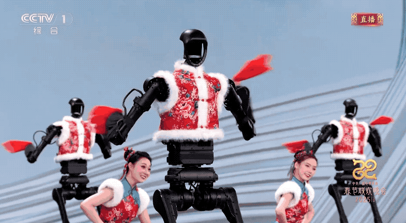 在2025年總臺央視春晚上,宇樹科技的16個人形機器人與16名舞蹈演員協同共舞。