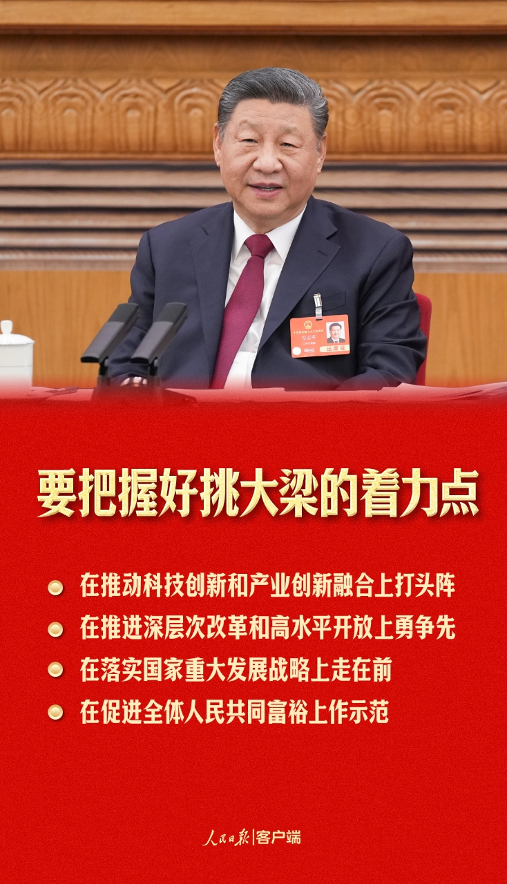 經(jīng)濟(jì)大省怎么挑大梁?這次參加江蘇代表團(tuán)審議,習(xí)近平總書記提出要把握好挑大梁的4個著力點(diǎn):在推動科技創(chuàng)新和產(chǎn)業(yè)創(chuàng)新融合上打頭陣,在推進(jìn)深層次改革和高水平開放上勇爭先,在落實(shí)國家重大發(fā)展戰(zhàn)略上走在前,在促進(jìn)全體人民共同富裕上作示范。