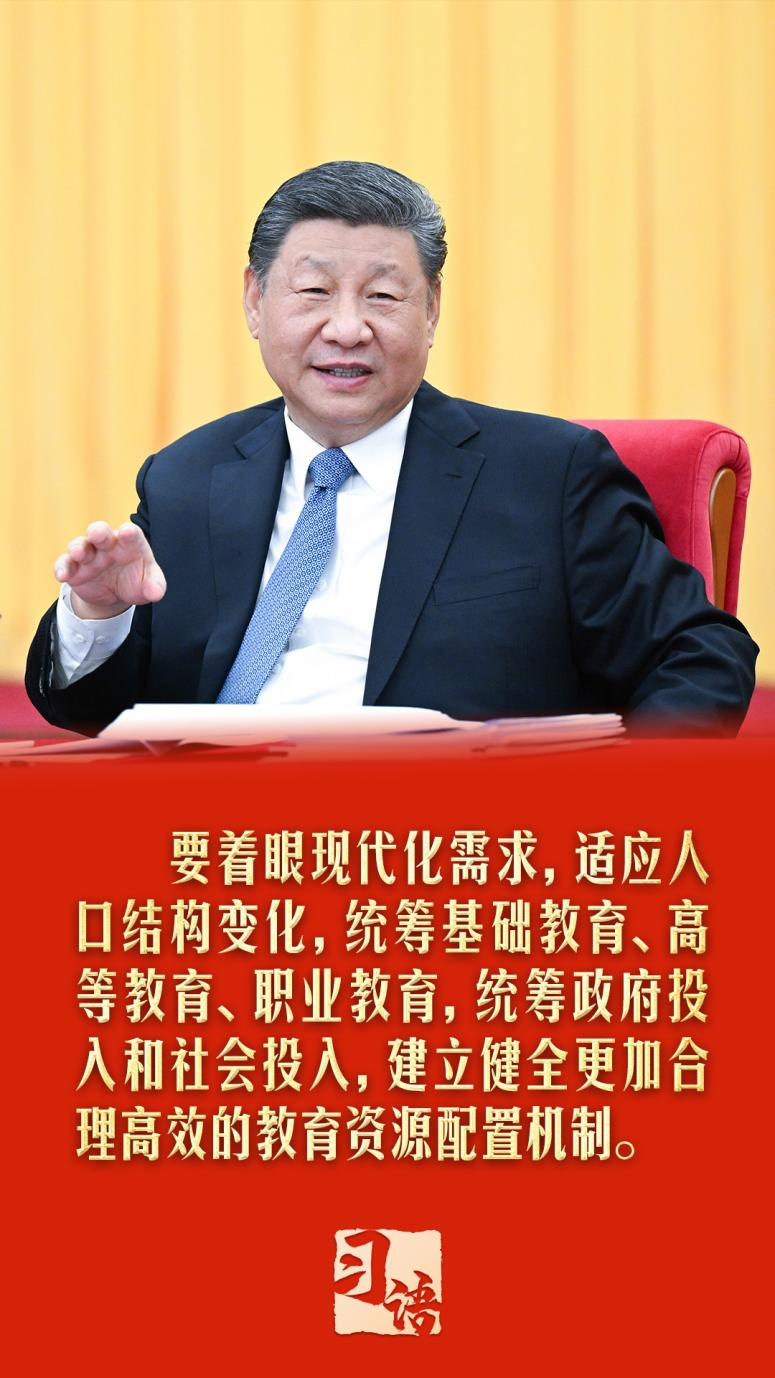 在3月6日的政協聯組會上,總書記謀深思遠:“要著眼現代化需求,適應人口結構變化,統籌基礎教育、高等教育、職業教育,統籌政府投入和社會投入,建立健全更加合理高效的教育資源配置機制?!?/p>
