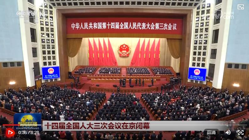 第十四屆全國人民代表大會第三次會議在圓滿完成各項議程后,11日下午在北京人民大會堂閉幕。大會批準政府工作報告、全國人大常委會工作報告等。大會通過關于修改全國人民代表大會和地方各級人民代表大會代表法的決定,國家主席習近平簽署第45號主席令予以公布。