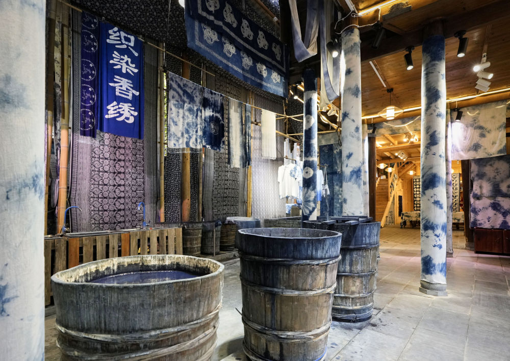 2025年3月14日,村民在肇興侗寨內制作蠟染。近年來,當地加大對少數民族非遺文創產品的研發和創新力度,同時進一步加強線上銷售,通過微信、網上直播、網店等方式進行帶貨,讓當地群眾通過指尖增收致富。