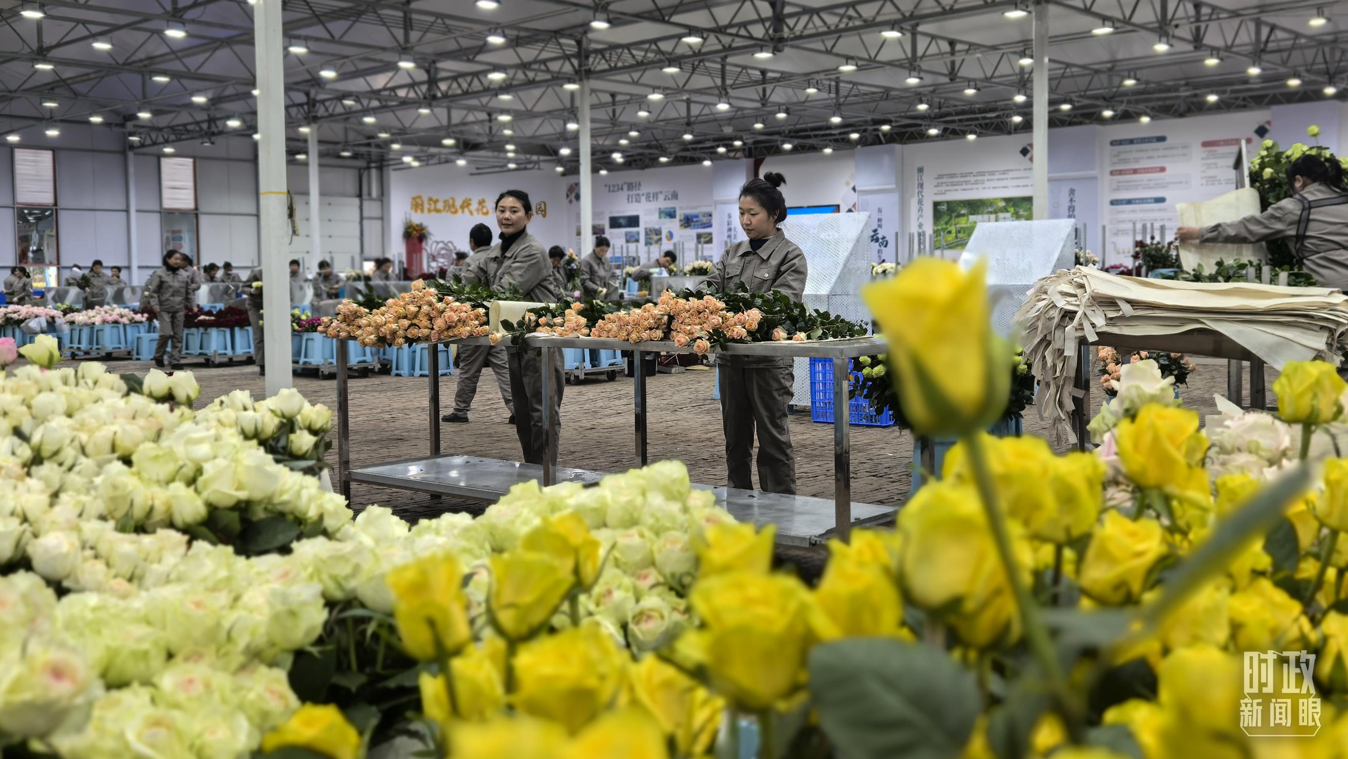 工人正在對采摘下來的鮮花進行整理、分類。(總臺央視記者邢彬拍攝)